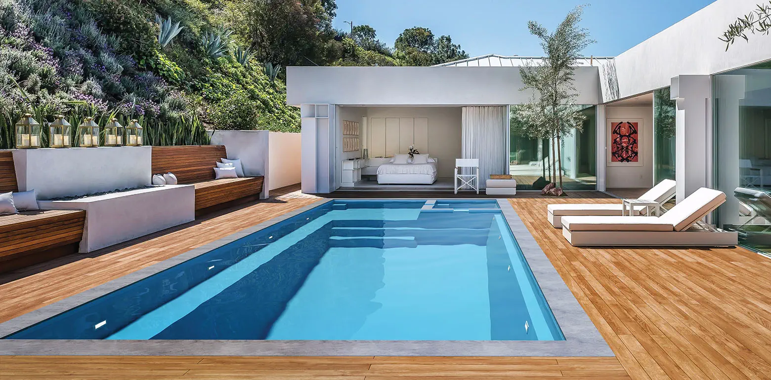 rectangular pool offering a dramatic